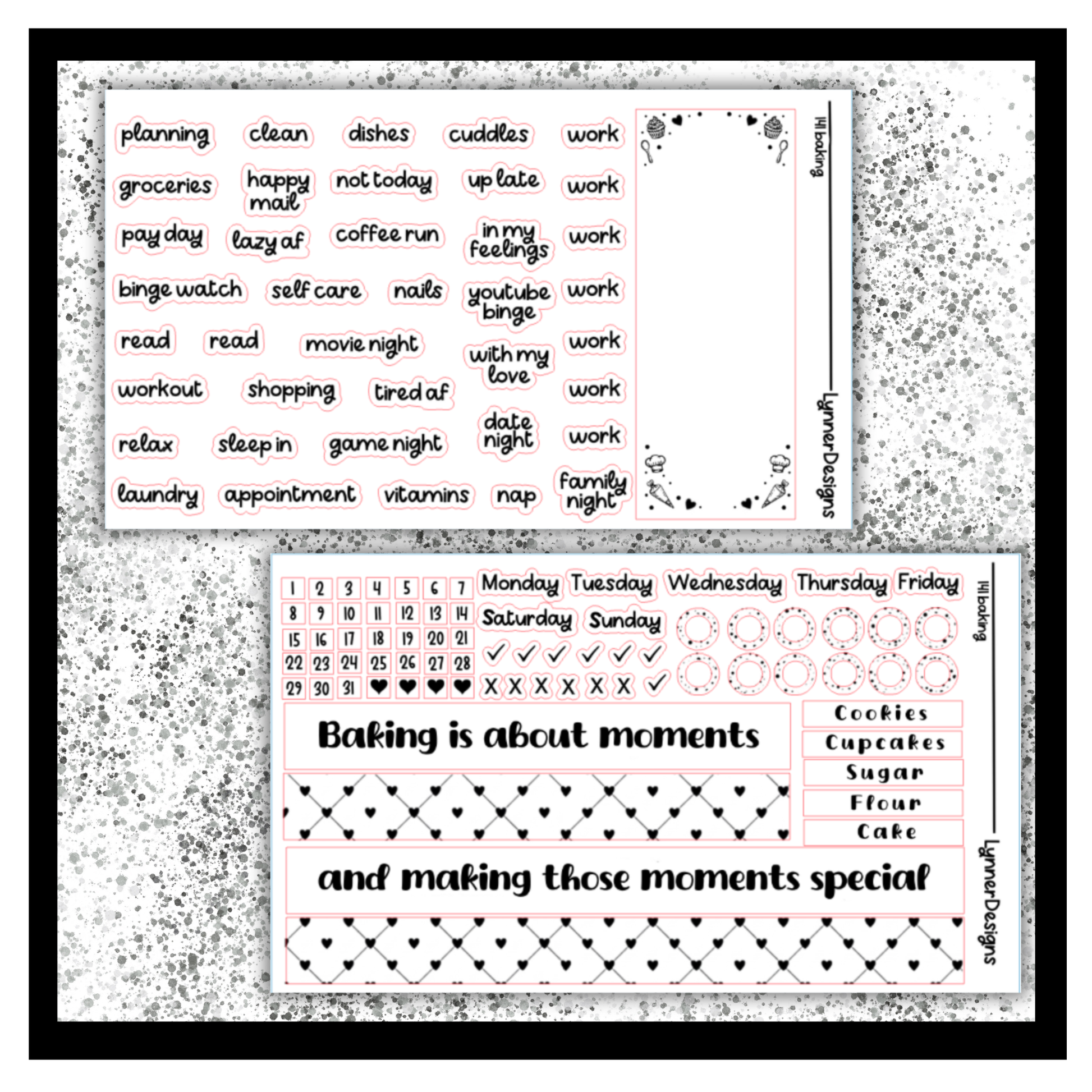 Foiled Packs are made up of SIX sheets of FOILED stickers. They are made to fit most vertical planners. Clear Sticker Paper. They are made to fit a regular size weekly box in an EC vertical but work well in most planners! Dimensions are 1.5x1.9” All stickers come kiss cut, meaning that you just have to peel and place anywhere on your planner where desired! All planner related items from my shop are shipped via a rigid mailer to ensure that they are not damaged during shipping. If you have any questions, please feel free to reach out. Please keep in mind that sometimes colors on the screen will vary slightly from the actual product depending on your monitor settings. Find me on Instagram to keep up with new designs, shop sales, and coupon codes @lynnerdesigns