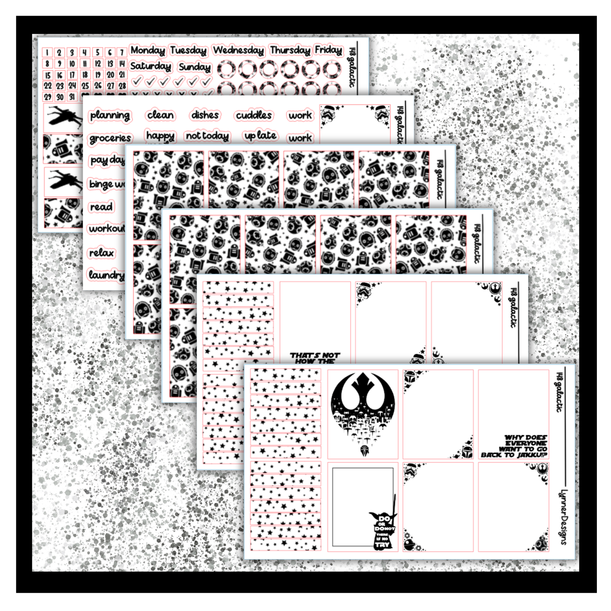Foiled Packs are made up of SIX sheets of FOILED stickers. They are made to fit most vertical planners. Clear Sticker Paper. They are made to fit a regular size weekly box in an EC vertical but work well in most planners! Dimensions are 1.5x1.9” All stickers come kiss cut, meaning that you just have to peel and place anywhere on your planner where desired! All planner related items from my shop are shipped via a rigid mailer to ensure that they are not damaged during shipping. If you have any questions, please feel free to reach out. Please keep in mind that sometimes colors on the screen will vary slightly from the actual product depending on your monitor settings. Find me on Instagram to keep up with new designs, shop sales, and coupon codes @lynnerdesigns