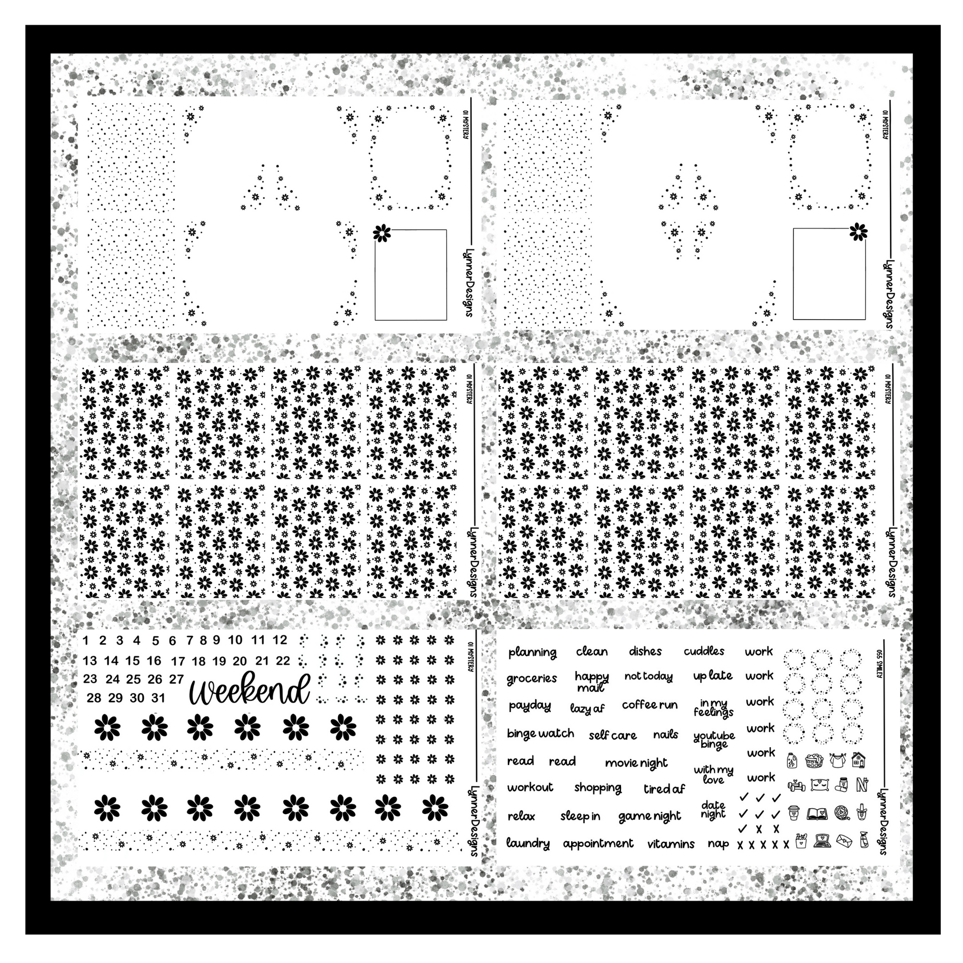 Foiled Packs are made up of SIX sheets of FOILED stickers. They are made to fit most vertical planners. Clear Sticker Paper. They are made to fit a regular size weekly box in an EC vertical but work well in most planners! Dimensions are 1.5x1.9” All stickers come kiss cut, meaning that you just have to peel and place anywhere on your planner where desired! All planner related items from my shop are shipped via a rigid mailer to ensure that they are not damaged during shipping. If you have any questions, please feel free to reach out. Please keep in mind that sometimes colors on the screen will vary slightly from the actual product depending on your monitor settings. Find me on Instagram to keep up with new designs, shop sales, and coupon codes @lynnerdesigns