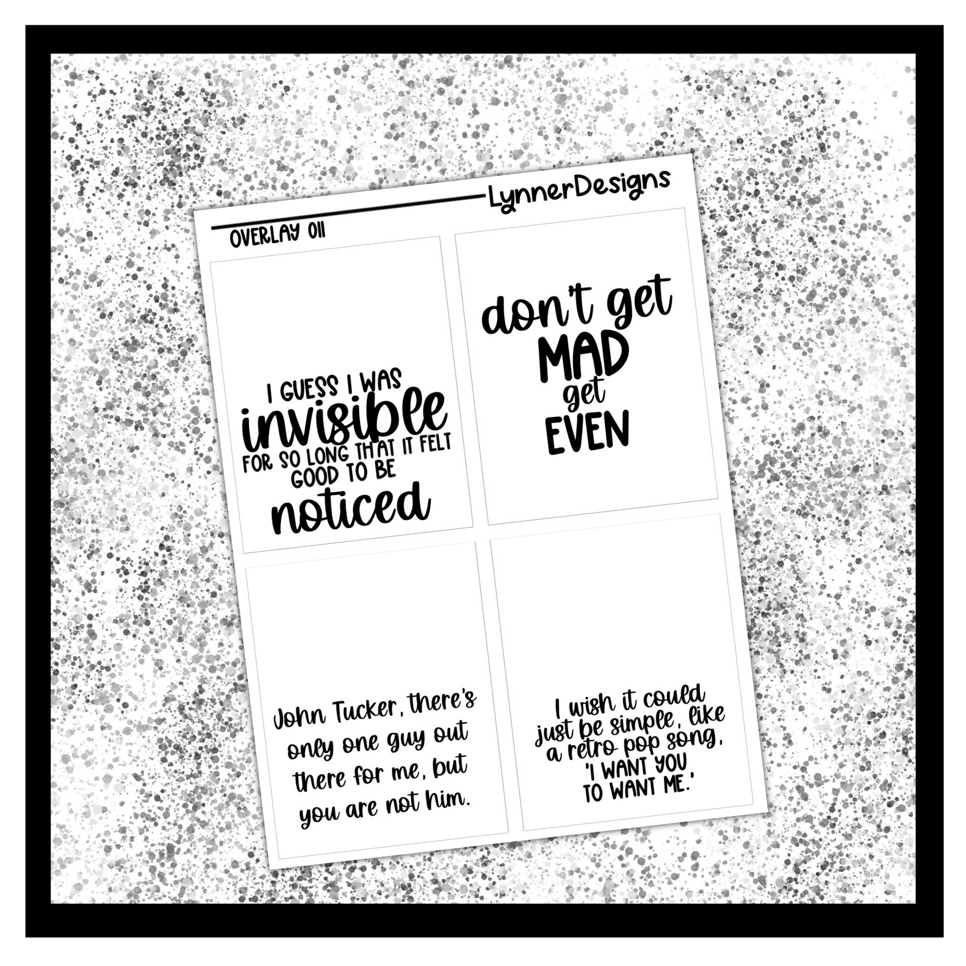 Clear Sticker Paper. All stickers come kiss cut, meaning that you just have to peel and place anywhere on your planner where desired! All planner related items from my shop are shipped via a rigid mailer to ensure that they are not damaged during shipping. If you have any questions, please feel free to reach out. Please keep in mind that sometimes colors on the screen will vary slightly from the actual product depending on your monitor settings. Find me on Instagram to keep up with new designs, shop sales, and coupon codes @lynnerdesigns