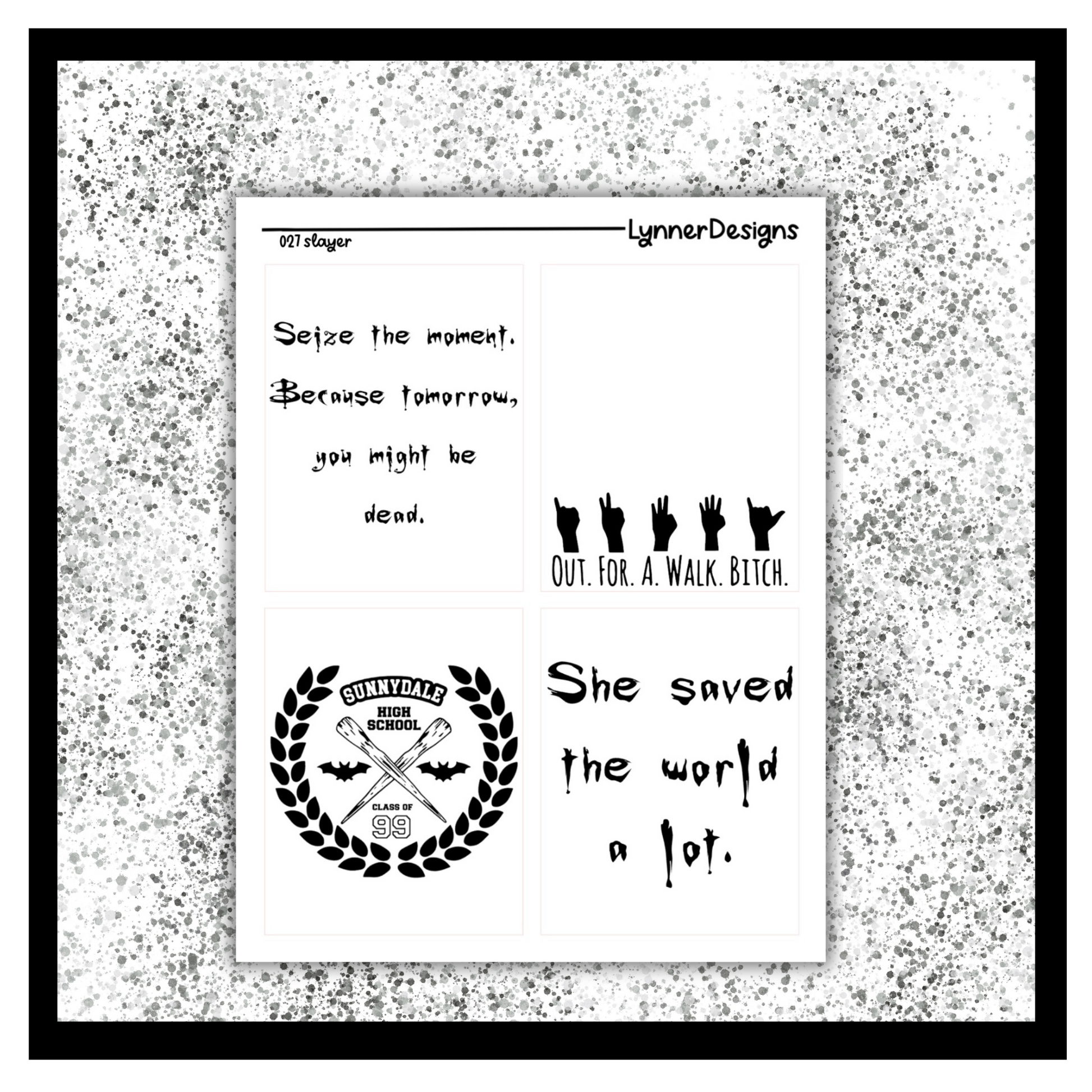 Clear Sticker Paper. All stickers come kiss cut, meaning that you just have to peel and place anywhere on your planner where desired! All planner related items from my shop are shipped via a rigid mailer to ensure that they are not damaged during shipping. If you have any questions, please feel free to reach out. Please keep in mind that sometimes colors on the screen will vary slightly from the actual product depending on your monitor settings. Find me on Instagram to keep up with new designs, shop sales, and coupon codes @lynnerdesigns