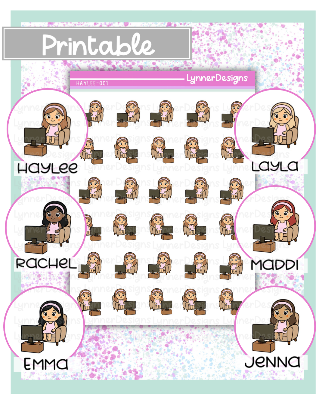All skin tones and hair colors included. The link will include - Silhouette cut files - PNG files (for Cricut) - there is also instructions on sizing in the png folder. - JPG for handcutting. I cannot guarantee the colors; every monitor, printer and paper is different, so the colors may not be the same as you see it on the computer screen. Due to the nature of the product, I cannot offer refunds, returns or exchanges. Personal use only, commercial use is not allowed. Hope you enjoy! Happy Planning! Lynn